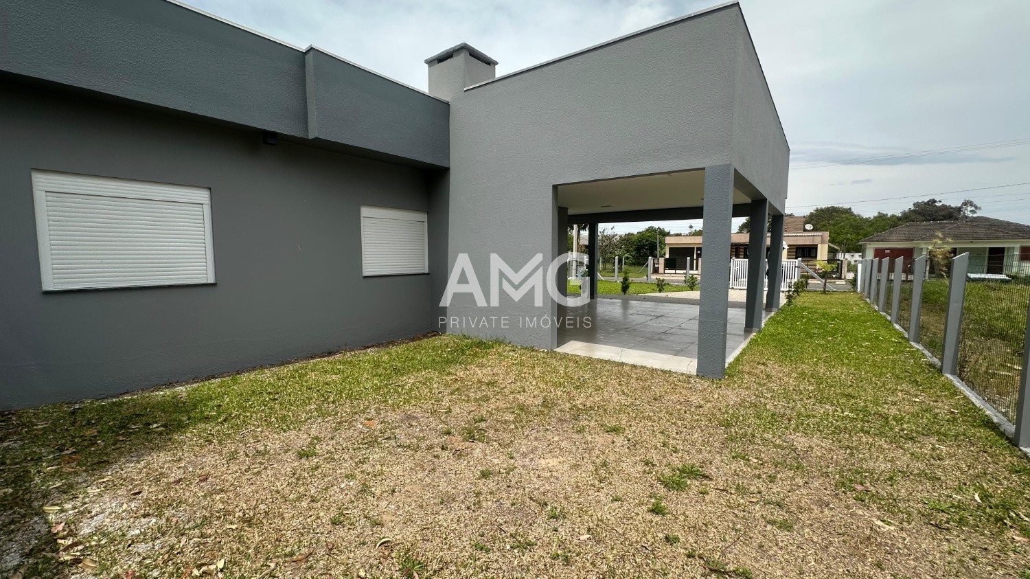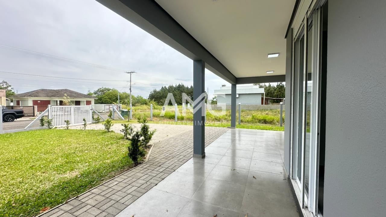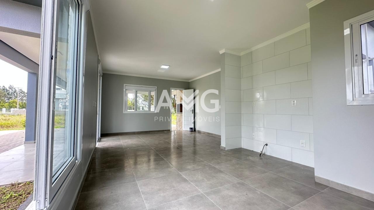 Residência com 3 dormitórios, sendo 01 suíte, 01 banheiro social, cozinha, sala de estar e jantar, despensa, churrasqueira, área de serviço, pátio, garagem para 02 veículos.